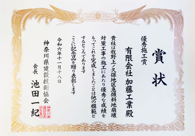 | 令和5年度 | 神奈川県厚木土木事務所津久井治水センター | 急傾斜地崩壊対策工事 公共(その2) | 法面補強工事 |