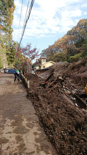 弊社では有事の際に微力ながらも役に立てていただこうと、地元中小企業で組織する建設業協力会に加入し、情報共有できる組織のもとで敏速な災害活動にあたっております。組織的な活動を行うことで道路やその周辺の事前の危険予知、復旧活動後の被災結果などを行政や地元選出の市・県議会議員、さらには国会議員へと、一般市民の皆様以上に敏速に報告することができます。このような連携がより強靭な災害の備えとなっております。災害復旧に必要な重機械、特殊車両なども自社所有し24時間365日の体制で万が一に備えております。